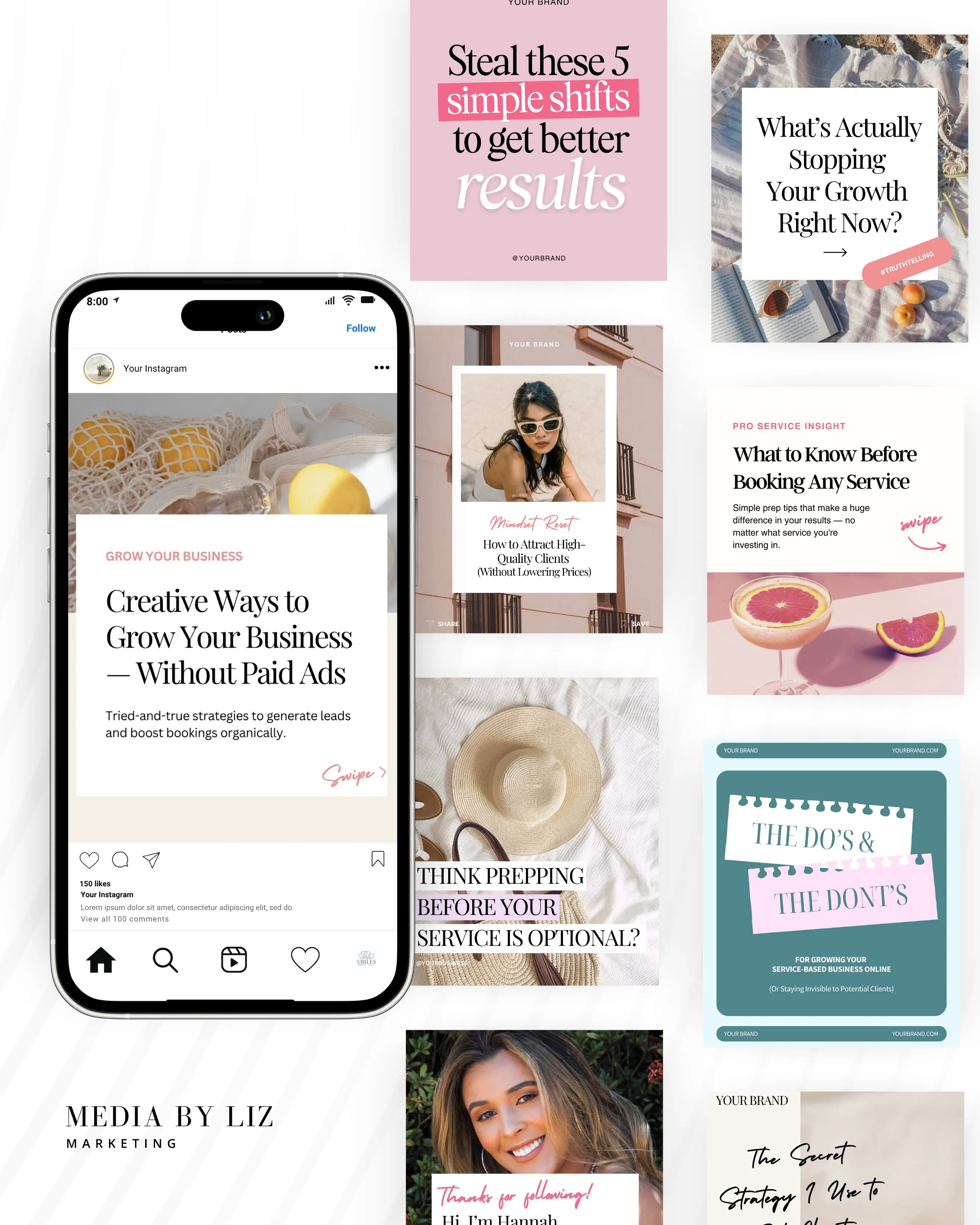 "I loved these templates. They are easy to customize and beautiful. They have truly changed our Instagram Game for our Med Spa. Liz even offered to customize them and continued to reach out when I had any questions! Her designs are up to date and so stylish. I wasn't sure what to expect, but WOW the designs were beautiful. I just purchased the Semaglutide templates too. 10/10"