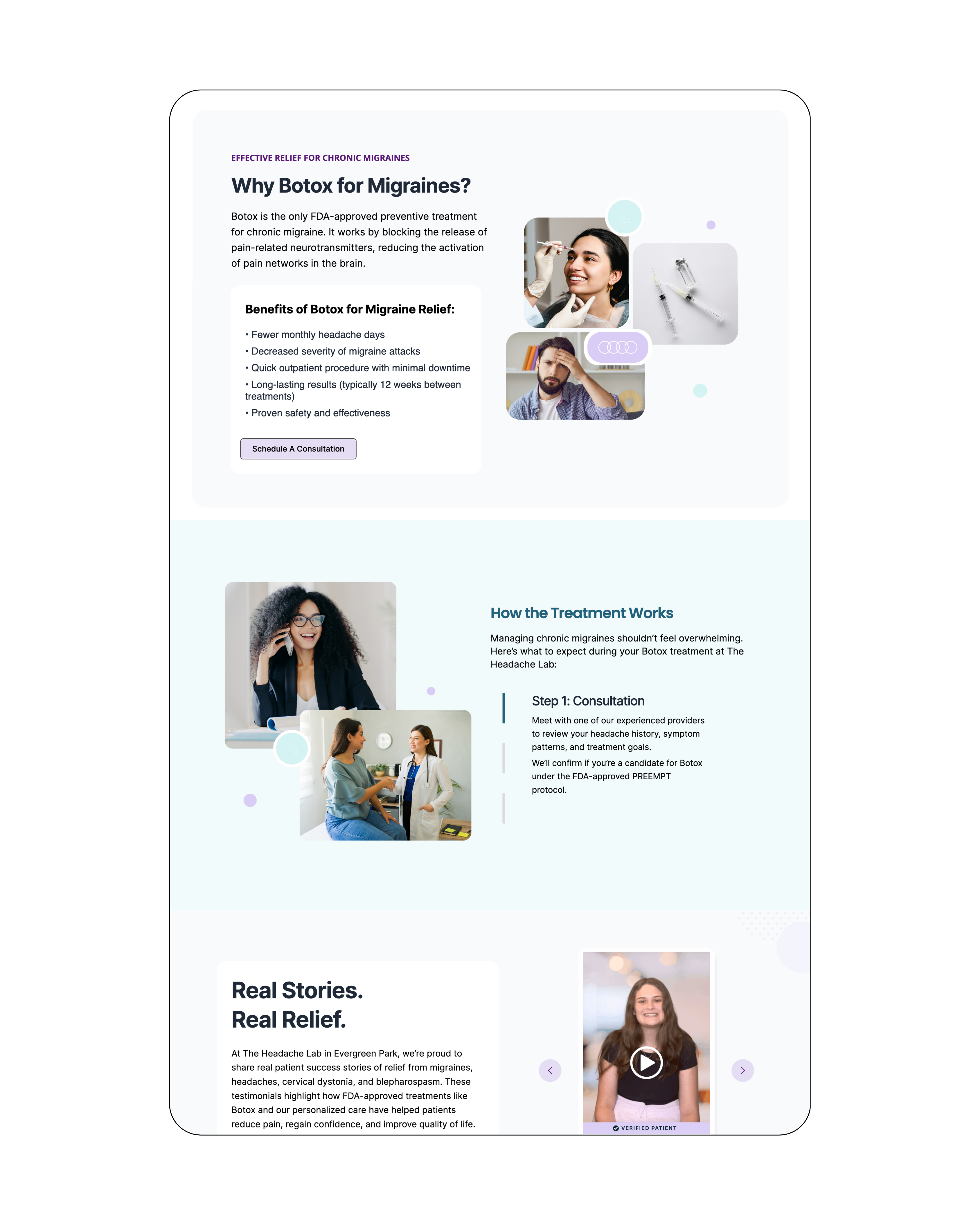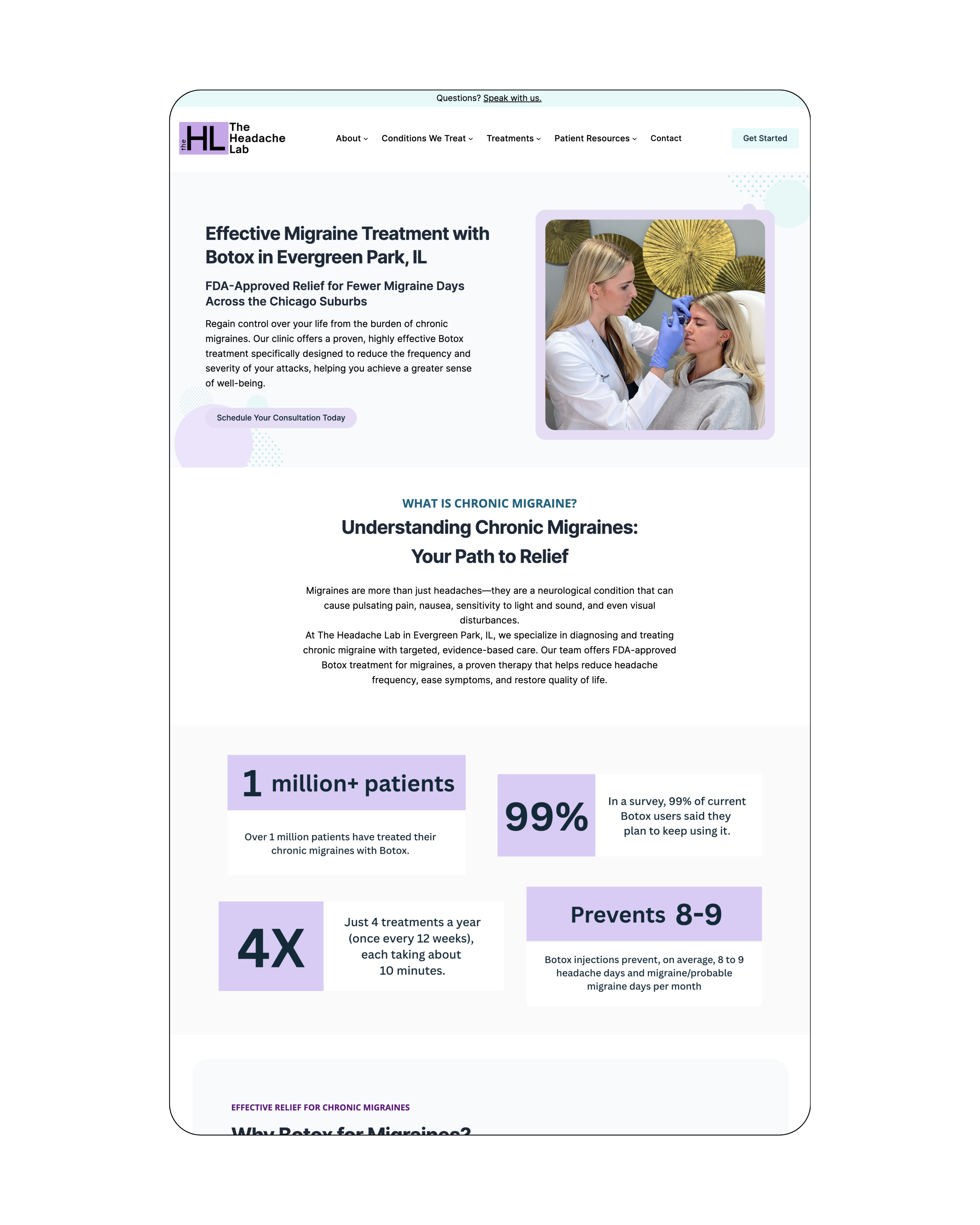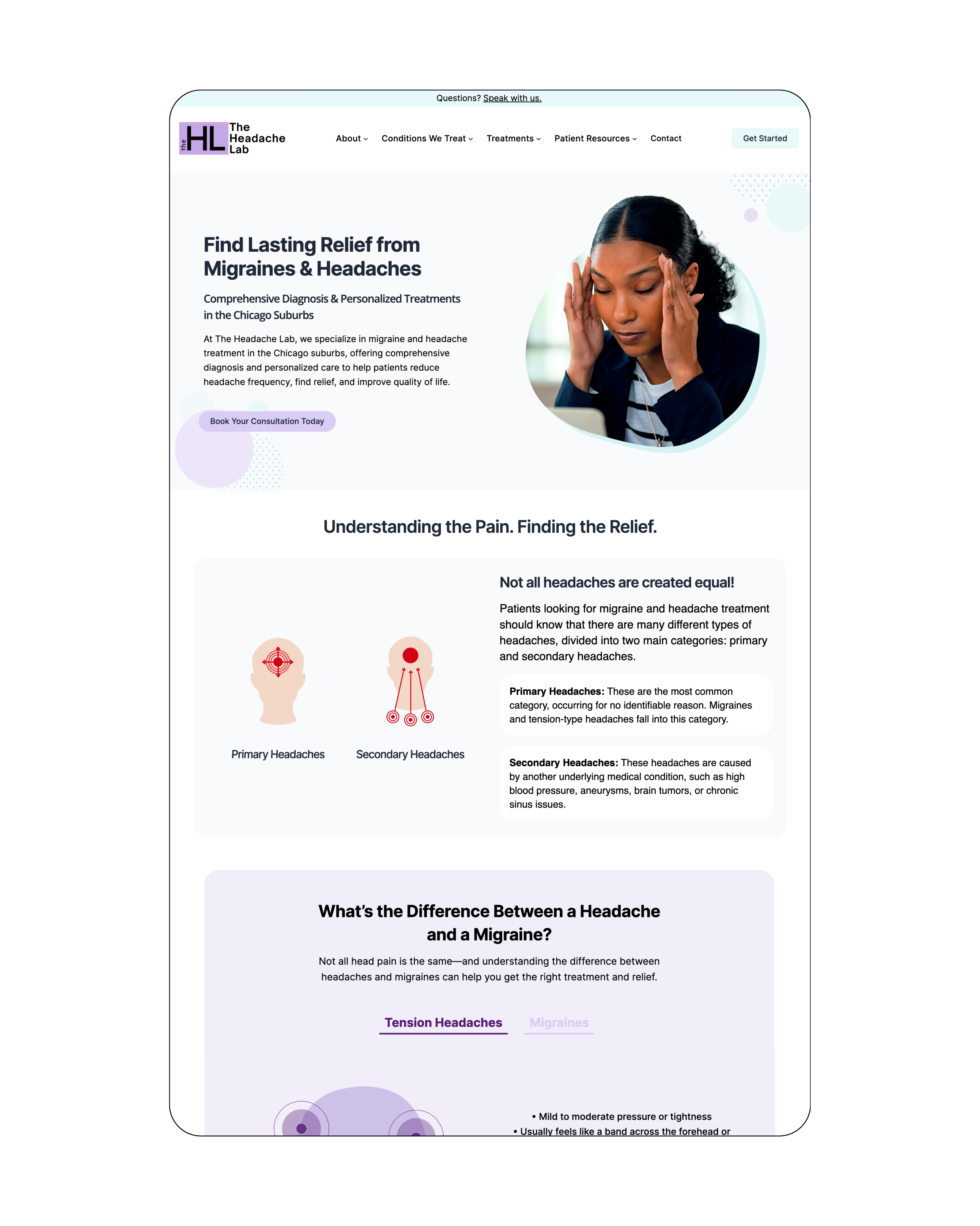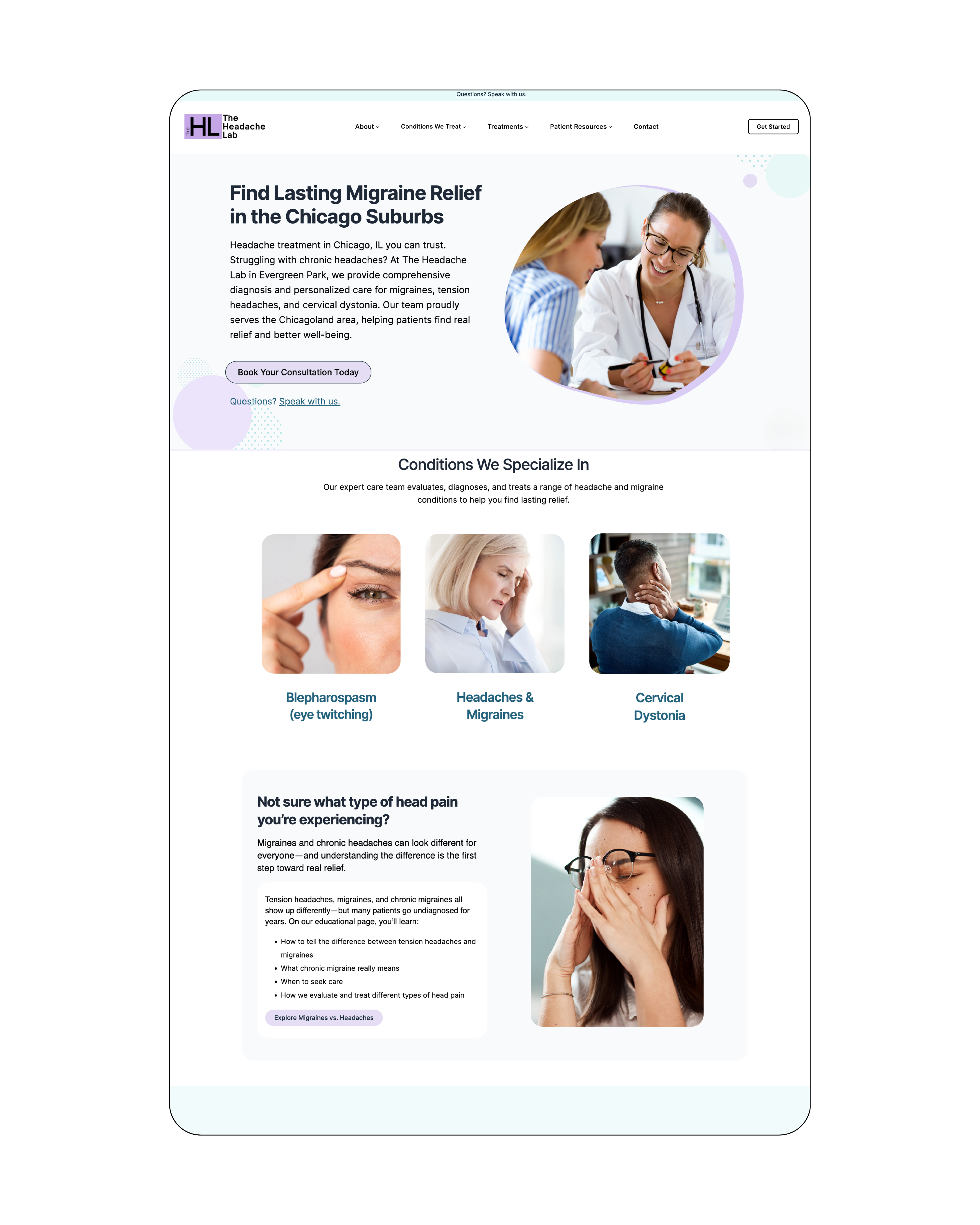 A clean, credible website designed for a migraine & movement-disorder clinic. This project focused on building trust, improving search visibility, and making it easier for patients to book consultations.