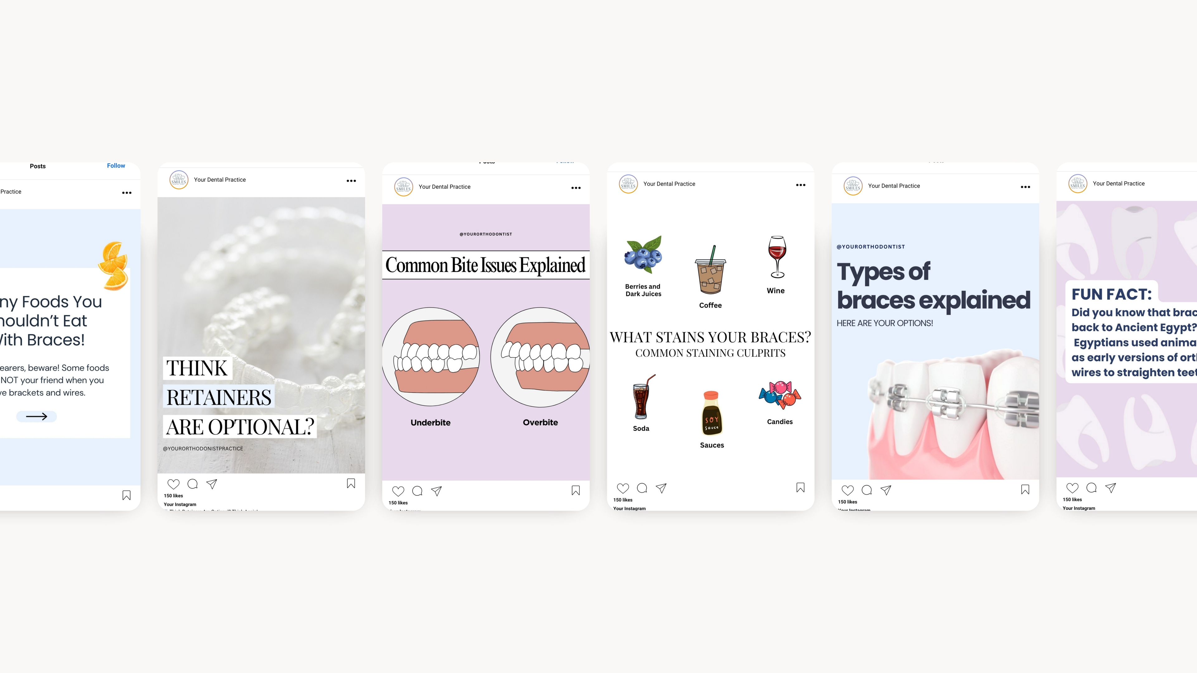Yes! Every post in this kit is fully customizable in Canva — you can change the text, font, images, and brand colors to match your dental practice’s aesthetic. These neutral dental Canva templates were built with modern orthodontic branding in mind.